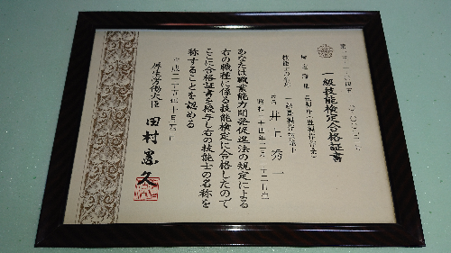 1級技能士を一生懸命努力し取得しました